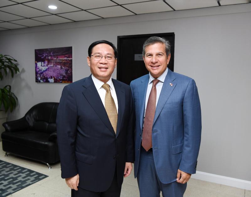 我國駐巴拿馬大使魏強,中聯部副部長李軍,上海市委常委、常務副市長周波陪同訪問。
