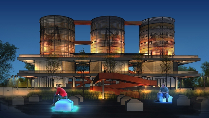 據介紹,此次景觀升級還重點把濱江區域內的輪渡站、塔吊、煙囪、水廠出水口、煤氣廠油罐等具有工業特質的構筑物進行了“點亮”,并引入燈光小品和互動裝置,增加趣味性。如在塔吊的底部增加軌道射燈,成為一個公共活動小舞臺。改造后的煤氣廠油罐成為具有時代記憶的標志物,投影燈投射在油罐表面上,映射出煤氣廠工業時代的工作場景。