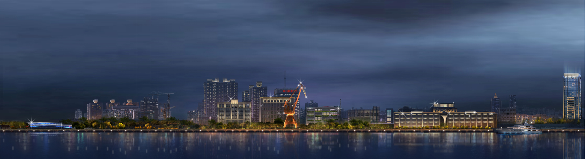在船廠段,過去存在岸線亮度偏差大的問題,建發國際亮度過高色彩濃烈,而其他建筑卻消失在夜色里。改造后,在第一層級的輪渡區域增加工業風格高桿燈具裝置,使輪渡區域成為一線江岸景觀的一部分;降低第二層級建發國際的燈光亮度、調整控制系統,在住宅建筑增加頂部照明,形成連續起伏的天際線。