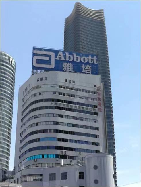 東大名路359號“百聯置業”大樓樓頂上的“雅培” 大型廣告牌設置于22層高樓頂,且體量巨大(約800余平方米),是多年前擅自設置的違法戶外廣告,屬歷史遺留問題。不但影響市容環境,還造成視覺污染。近年來,隨著時間的推移,由于設施老化、維護不及時、安全監管不到位等,給城市運行帶來了安全隱患。