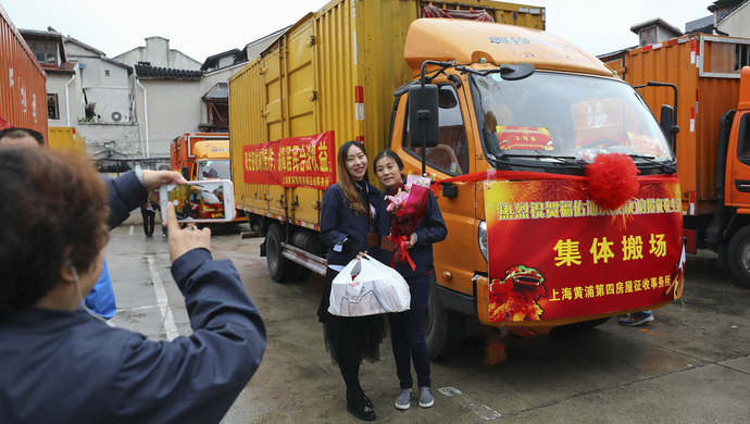 11月18日一早,人民路19號前人頭攢動,一輛輛身披彩旗的搬家車排列整齊,當天是福佑地塊北部基地居民集體搬家的日子。在搬運人員的幫助下,居民們興高采烈地將家中的物品裝上了卡車,他們即將告別“天天倒馬桶”的日子,奔向全新的生活。