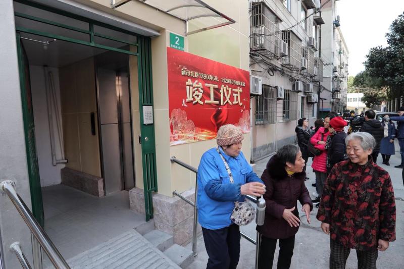 家住新市北路1390弄6號4樓的退役軍人王老伯,腿部殘疾多年。愛人陳阿姨也年近八旬,平日里王老伯只有靠愛人的照護,下樓對他而言成了一種奢望。他時常在老伴耳邊念叨著:“我每天在家里就像坐牢,能活動的就家里這點空間,什么時候能下樓活動活動啊!”這次,王老伯的愿望終于實現了。今天一早,他就迫不及待地讓老伴帶他坐電梯下去看看小區的變化。“今天好激動,平生第一次在家里坐上電梯了,今后可以經常下樓了!”王老伯對記者說。