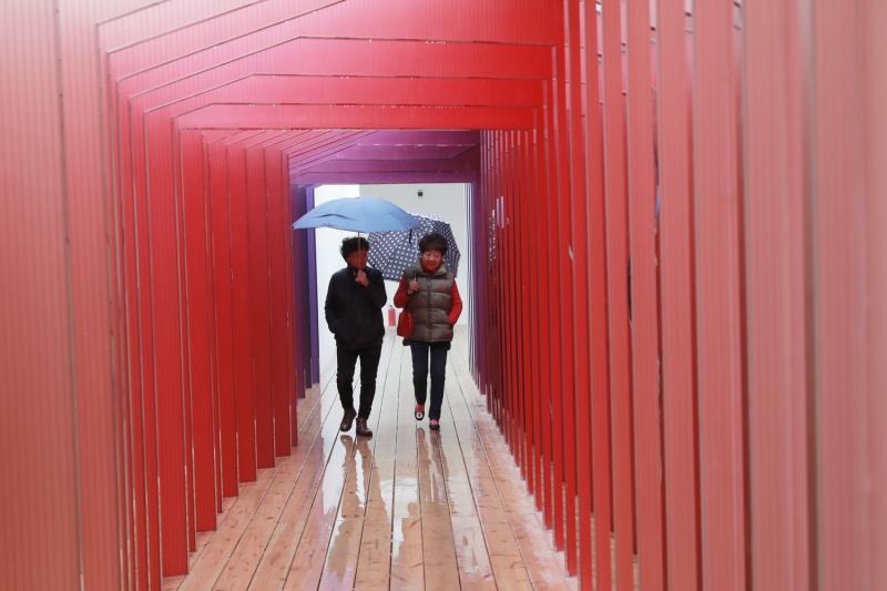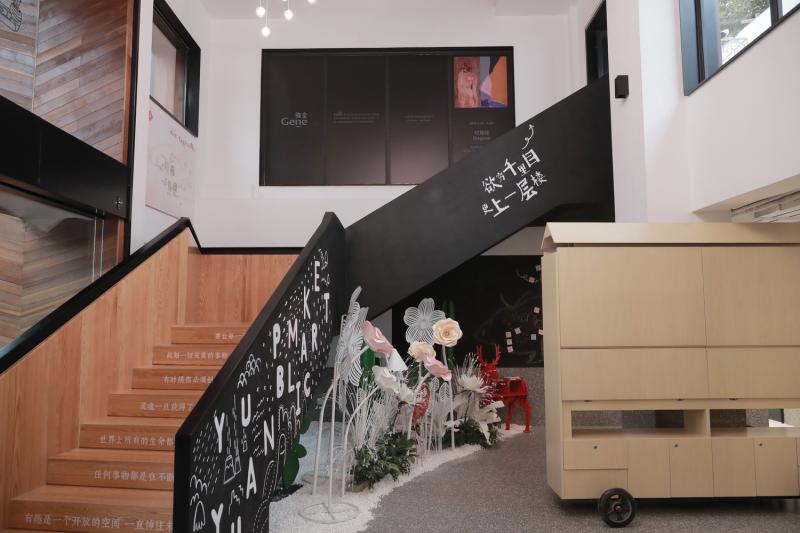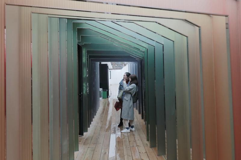 “粟上海社區美術館”的潑墨長廊。潑墨長廊靈感來源于劉海粟的畫作《黃山光明頂》,運用18種模塊的形體周期變化,使空間變得靈動。