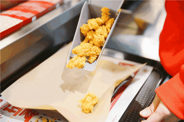 記者在茂名北路與吳江路交界口的肯德基餐廳注意到,原本用來盛放雞翅、薯條、雞塊、蛋撻等食品的一次性紙盒、紙袋不見了,取而代之的是一種黑色的網兜狀餐籃,餐籃上墊了一層薄薄的防油紙,以免食物直接接觸餐籃,確保衛生,也便于打包攜帶。