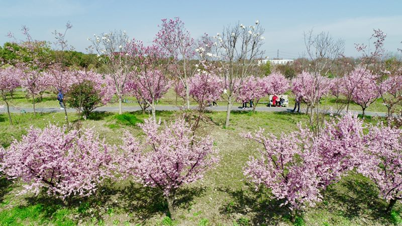 位于朱涇鎮的花開海上生態園,更是每月花事不斷。3月下旬,是梅花節。此時,園中主要觀賞花卉有上千株的粉紅色的美人梅、海棠,期間還有山櫻花、玉蘭花、茶梅、美人茶、金鐘花、連翹、新含笑、二月蘭等花卉陸續開放。3月下旬至4月上旬,是櫻花節。千株日本早櫻、晚櫻在生態園的櫻花園盛開,同期還有柳穿魚、鳶尾、溪蓀、紫荊花等花卉開放,另外還可觀賞成排的白色花葉三角楓,大片的紅色和黃色雞爪槭、歐洲榛、山麻桿等春色葉,主要集中在楓花路和秋景園。
