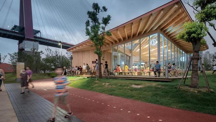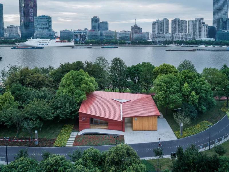 望江驛,坐落在浦東濱江顯要位置樹蔭下的小房子,一個200平方米的彈丸之地,卻發揮著大作用。它集合了公共廁所、公共休息室、自動售賣機、雨傘架等便民設施。行至濱江,這里是不可或缺的落腳點。