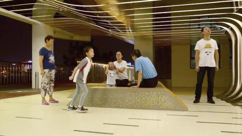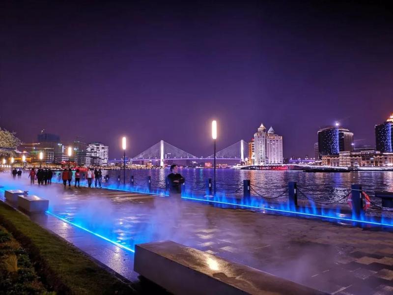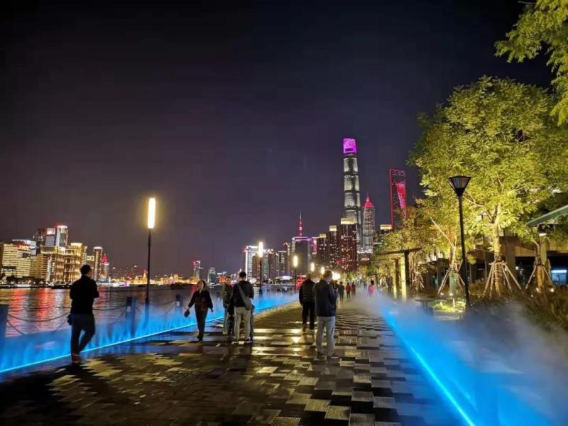 最后,設計師在藝倉的人行通道里安裝了150米的燈光霧噴系統,可隨著行人步伐進行高低不同的霧噴表演,并結合燈光給來往的人們帶來回到童年的玩水樂趣。