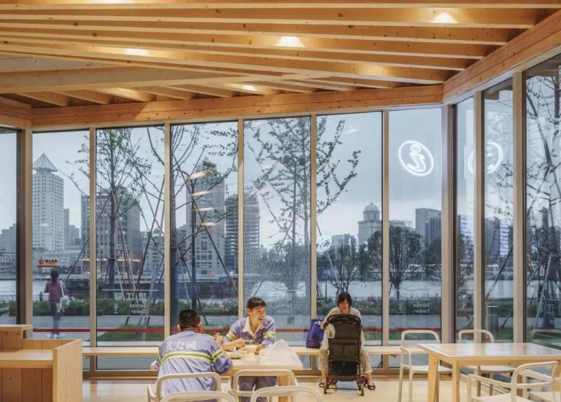 在浦東濱江,其昌棧輪渡站的二層空間便是這樣一個“城市客廳 ”,原有的建筑內部空間向市民徹底打開,自由使用。