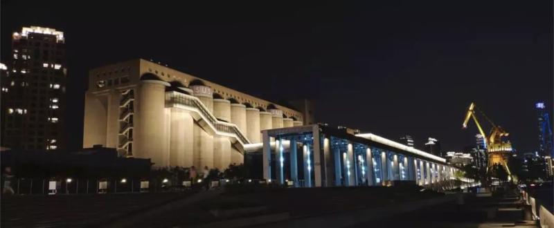 作為上海浦東舊工業遺存改造的新地標,在改造后,民生路碼頭筒倉有了其新的社會功能,此次夜景提升就是在其功能上進行外在的精神體現,用新科技,以藝術的手法在其表皮上展現直觀的歷史風云和上海發展史,通過安裝在筒倉正面的22臺25000流明的投影設備,在長達400米的筒倉表面形成一幅巨大的歷史畫軸。穩重,醇厚的暖黃光均勻照亮建筑,體現其歷史見證者的時代感。