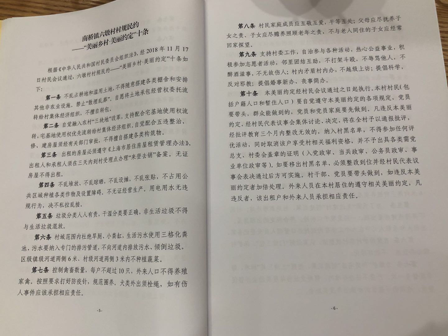 奉賢正式推進各村制訂“美麗約定”村規民約是去年夏天的事。其時,正值上海市村民委員會換屆選舉,各村新班子上任后要重新修訂村規民約。“我們想借此機會產生一批老百姓真正參與制定的、能夠切實發揮治理作用的約定。”奉賢區地區工作辦公室主任汪瑜蓉說。