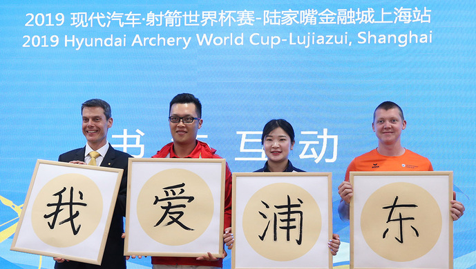 賽前新聞發布會上,賽事總監克里斯?馬什還為現場觀眾帶來了一份別樣的驚喜。他與來自中國隊、韓國隊和荷蘭隊的三名運動員代表現場揮毫潑墨,寫下了“我愛浦東”四個字。