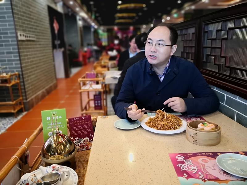 3月18日,上海陸家嘴世紀匯在疫情發生后首次開放餐飲堂食。當天中午,陸家嘴管理局局長張宇祥與班子成員走進位于世紀匯二樓的點都德點心店,自掏腰包點了一份三絲炒面和一份蝦餃。“為了推動陸家嘴地區的復工復產復市,我們一直在關注商圈里的企業。聽說今天可以堂吃了,我們帶頭來試吃,就是想告訴大家,陸家嘴金融商圈是安全的,請大家放心。”張宇祥說。