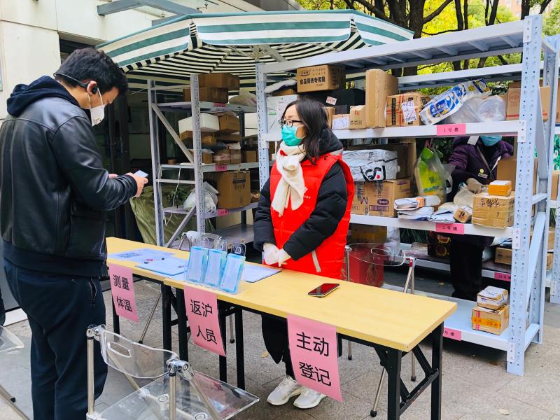 物業協助居委會進行返滬居民核查 (舒抒 攝)