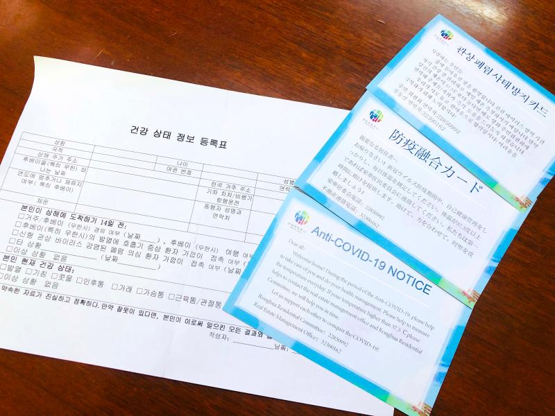 目前,無論中外人員,來自境內外重點地區的居民回到榮華居民區,都會收到一份“防疫融情包”,包含健康監測記錄冊、四國語言防疫“融情卡”和一只口罩、一個消毒片,提醒居家隔離時防護齊備迎接醫護人員的上門登記。像菲律賓籍居民王煊熔這樣來自古北市民議事會的“洋居民”成員,則早早承擔起為居民區防疫建言獻策的責任,主動了解小區外籍居民對口罩登記、人員接送流程的意見,第一時間與居委干部們交流。