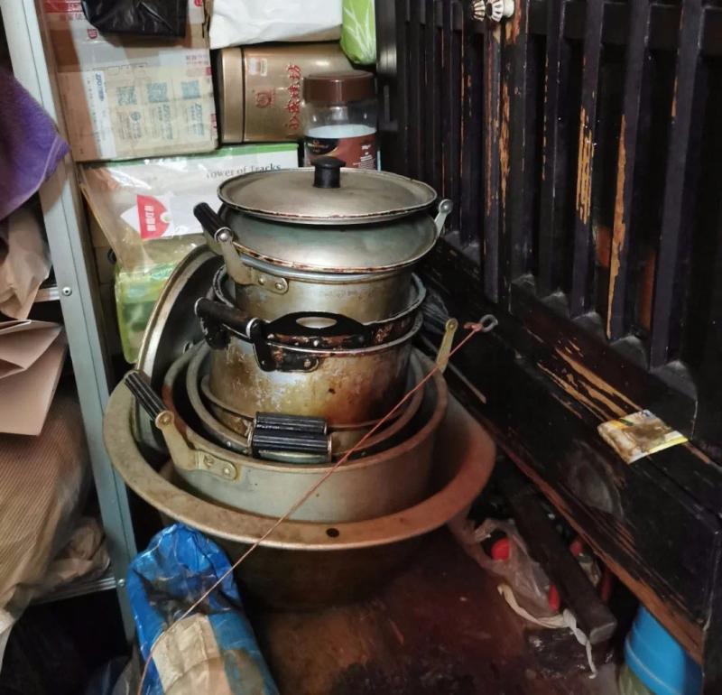 他們的生活就像屋里的三五牌臺鐘和老照片一樣,仿佛還停留在數十年前,日子過得格外艱苦。屋內過道僅能容一人側身而過,收納的物品已經在角落疊高到了近2米,晾曬衣服還要爬樓梯到屋頂。