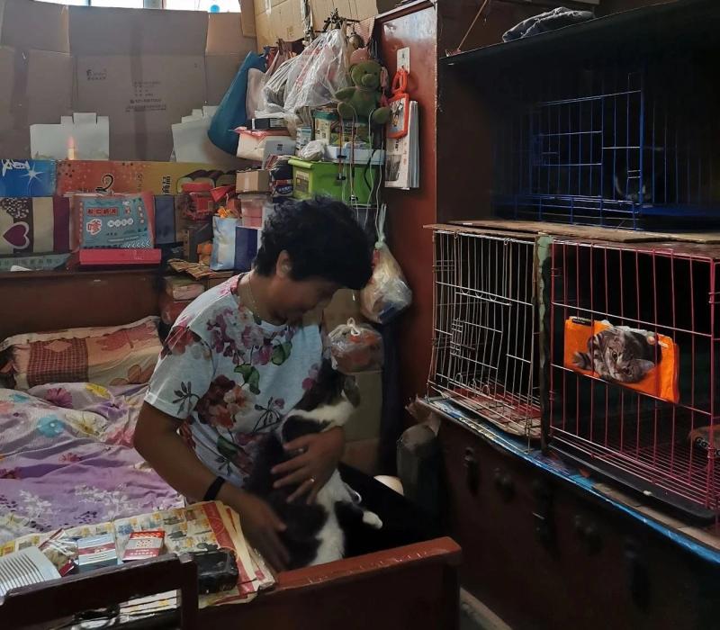 67歲的徐靖皞是老虹口,他從出生、成家立業、結婚生子都在這里。如今,一家三口擠在19.4平方米的蝸居中,房屋中間用木板做隔斷,他和妻子以及收養的三只流浪貓住一邊,32歲的兒子則住在另外一邊。